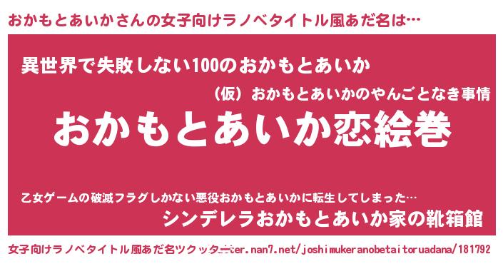 | 男性向けラノベタイトル風あだ名 | 『ノーゲーム・ノーオカモトアイカ』 |