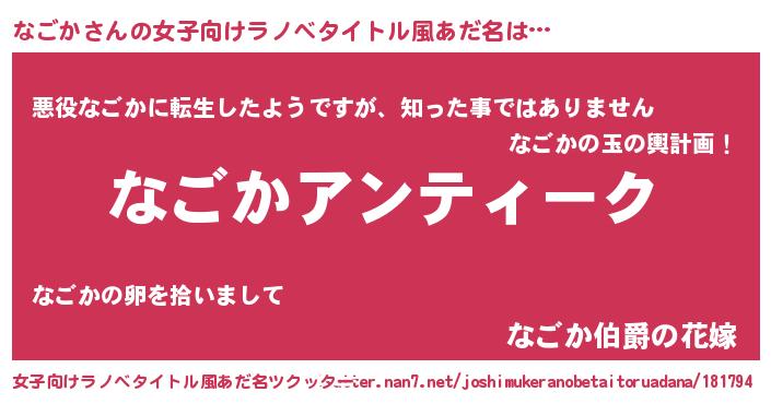 | 意味不明あだ名 | 『自称なごか』『住所不定無職なごか(65歳)』 |