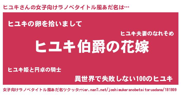| ファンタジー風あだ名 | 『エターナルヒユキー』『ヒユディッシュ』 |