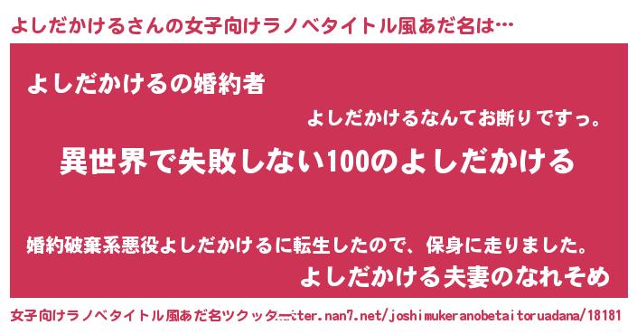 | 胡散臭い通販商品みたいなあだ名 | 『絶対に幸福をもたらす健康食品…その名も「よしだかける」』 |