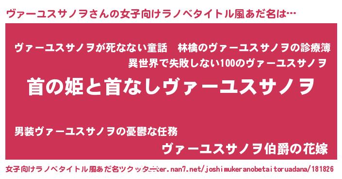 | ファンタジー風あだ名 | 『ヴァルヴァーナ』『ヴァディッシュ』 |