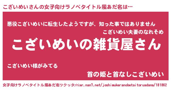 | 男性向けラノベタイトル風あだ名 | 『やはりこざいめいの青春ラブコメはまちがっている 』 |