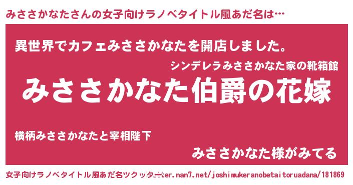 | 欧米人風あだ名 | 『みささかなたクリステル』 |
