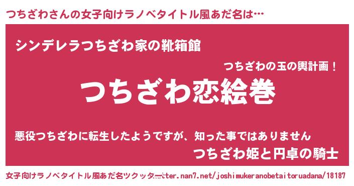 | 男性向けラノベタイトル風あだ名 | 『おまえをオタクにしてやるから、俺をつちざわにしてくれ! 』 |