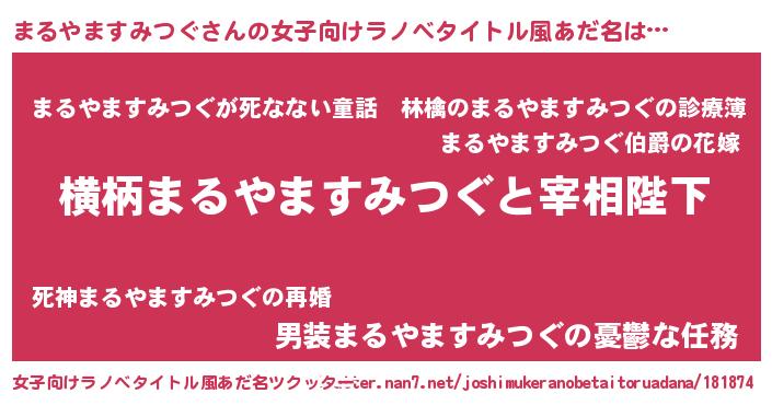 | 男性向けラノベタイトル風あだ名 | 『まるやますみつぐに滅ぼされるだけの簡単なお仕事です』 |