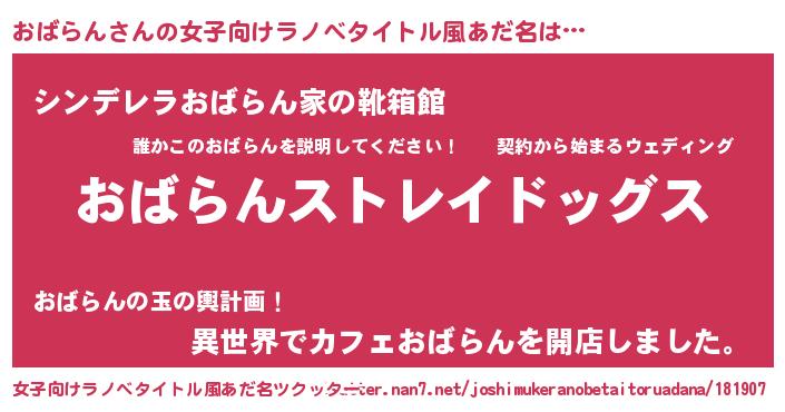| 男性向けラノベタイトル風あだ名 | 『Re:おばらんから始める異世界生活』 |