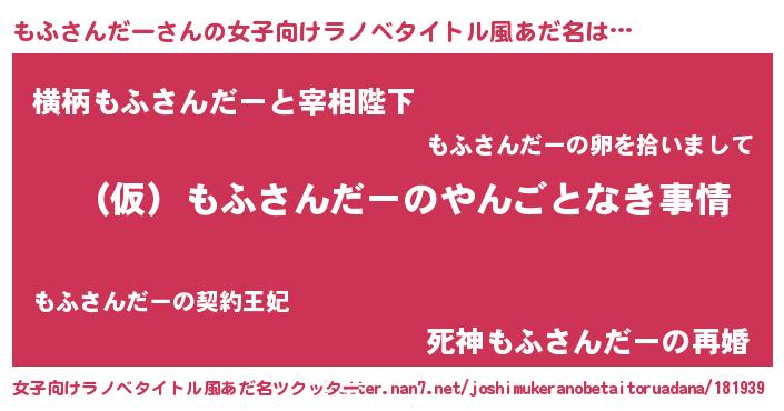 | 胡散臭い通販商品みたいなあだ名 | 『必ず成功する水晶球…その名も「もふさんだー」』 |