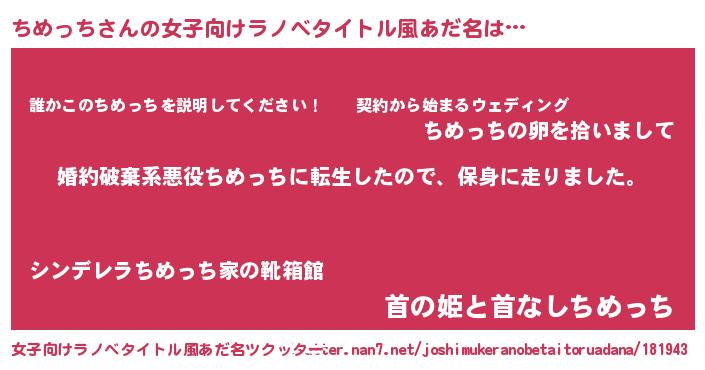 | 胡散臭い通販商品みたいなあだ名 | 『必ず成功するブレスレット…その名も「ちめっち」』 |
