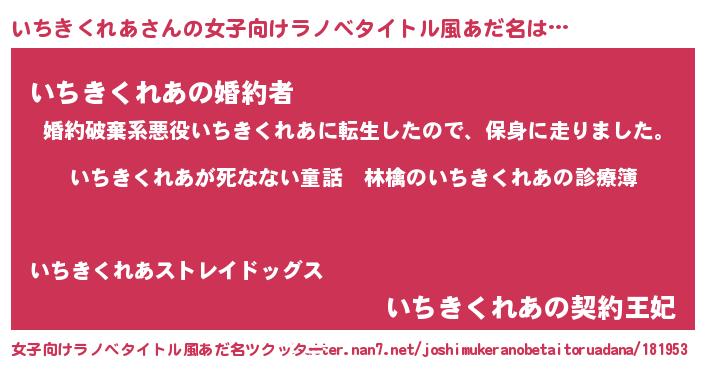 | 意味不明あだ名 | 『住所不定無職いちきくれあ(14歳)』 |