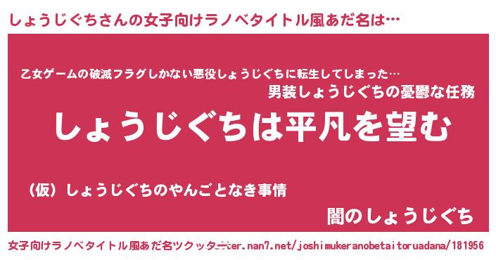 | 男性向けラノベタイトル風あだ名 | 『ダンジョンにしょうじぐちを求めるのは間違っているだろうか』 |