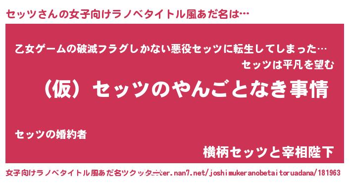 | 胡散臭い通販商品みたいなあだ名 | 『必ず成功する水晶球…その名も「セッツ」』 |