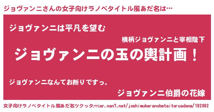 | 胡散臭い通販商品みたいなあだ名 | 『全米が絶賛したサプリメント…その名も「ジョヴァンニ」』 |