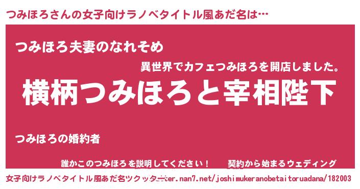 | 男性向けラノベタイトル風あだ名 | 『つみほろに滅ぼされるだけの簡単なお仕事です』 |