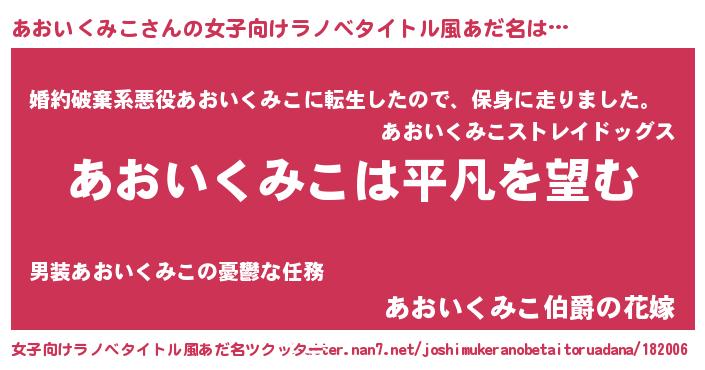 | 男性向けラノベタイトル風あだ名 | 『ダンジョンにあおいくみこを求めるのは間違っているだろうか』 |