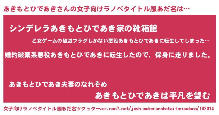 | 男性向けラノベタイトル風あだ名 | 『アキモトヒデアキスレイヤー』 |