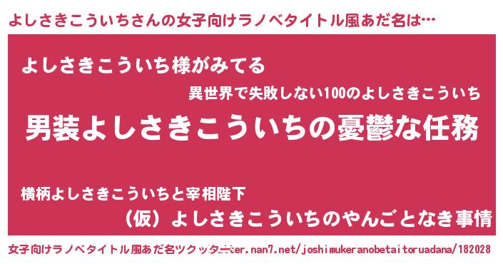 | 意味不明あだ名 | 『とにかく怪しいよしさきこういち』 |