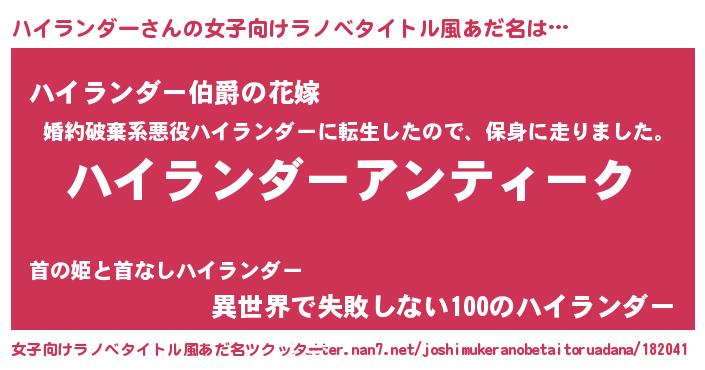 | 意味不明あだ名 | 『自称ハイランダー』 |