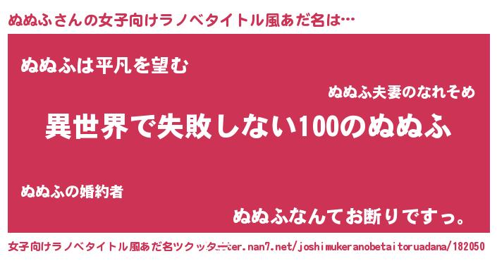 | 男性向けラノベタイトル風あだ名 | 『ぬぬふという概念が存在しない退屈な世界 』 |