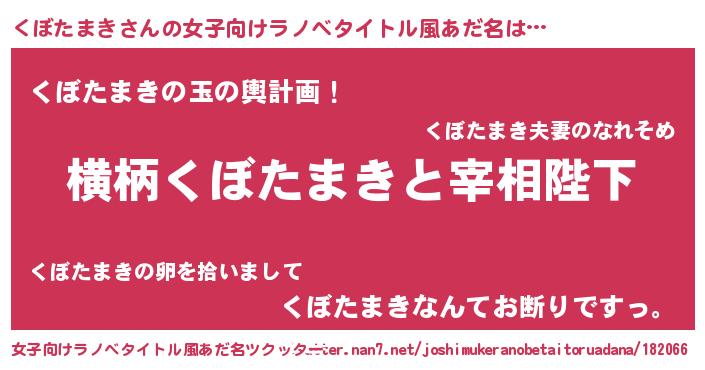 | 男性向けラノベタイトル風あだ名 | 『くぼたまきに滅ぼされるだけの簡単なお仕事です』 |