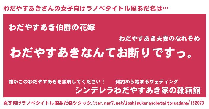 | 意味不明あだ名 | 『自称わだやすあき』 |