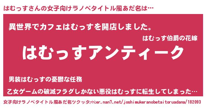 | 男性向けラノベタイトル風あだ名 | 『魔法科高校のはむっす』 |