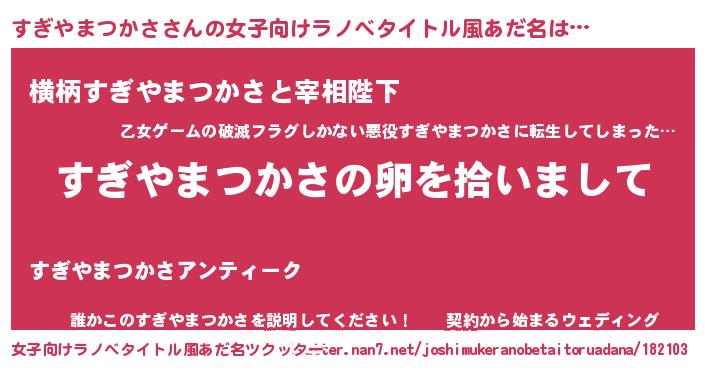 | 男性向けラノベタイトル風あだ名 | 『ダンジョンにすぎやまつかさを求めるのは間違っているだろうか』 |
