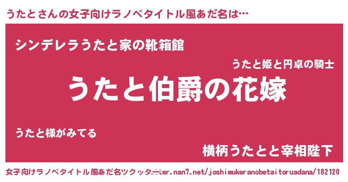 | 肩書あだ名 | 『うたと総理大臣』『うたと艦長』 |