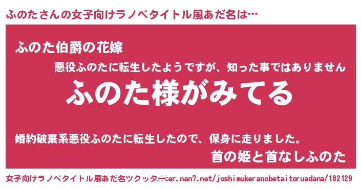 | 胡散臭い通販商品みたいなあだ名 | 『全米が絶賛したサプリメント…その名も「ふのた」』 |