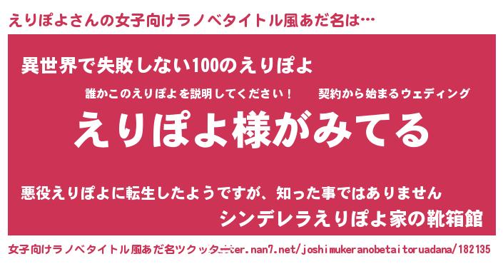 | 男性向けラノベタイトル風あだ名 | 『えりぽよの嫁は女の子じゃないと思った?』 |