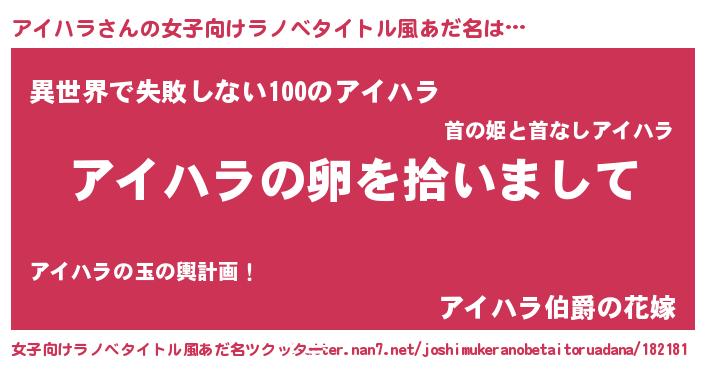 | 男性向けラノベタイトル風あだ名 | 『ダンジョンにアイハラを求めるのは間違っているだろうか』 |