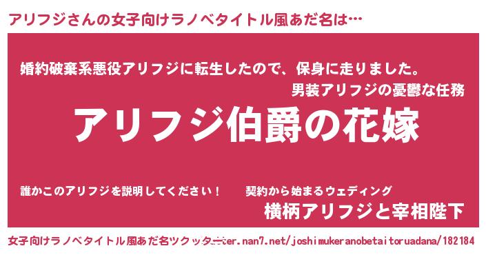 | ファンタジー風あだ名 | 『エターナルアリフジー』『アリフェル』 |