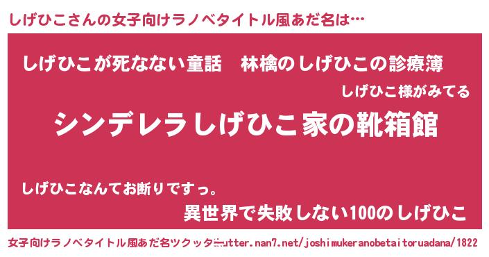 | 男性向けラノベタイトル風あだ名 | 『冴えないしげひこの育てかた』 |