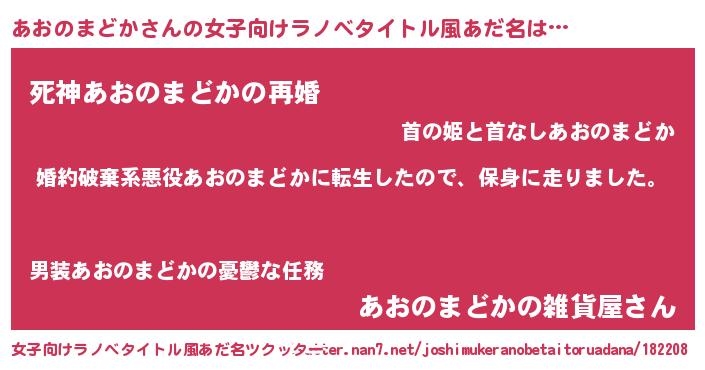 | 伝説のあだ名 | 『人々から恐れられる錬金術士あおのまどか』 |