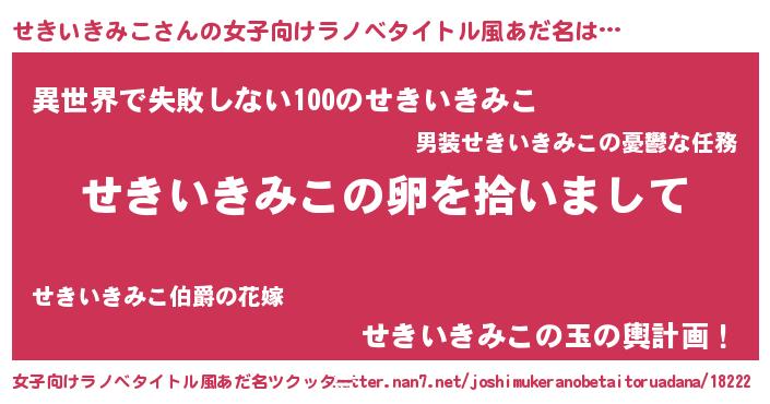 | 男性向けラノベタイトル風あだ名 | 『ダンジョンにせきいきみこを求めるのは間違っているだろうか』 |