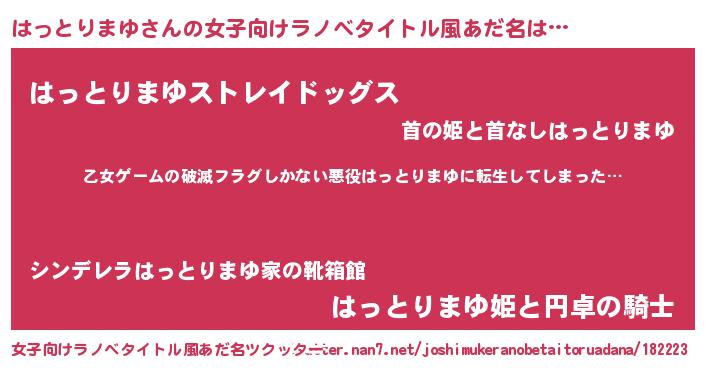 | 意味不明あだ名 | 『住所不定無職はっとりまゆ(89歳)』 |