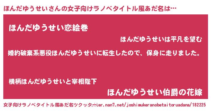 | 男性向けラノベタイトル風あだ名 | 『ホンダユウセイスレイヤー』 |