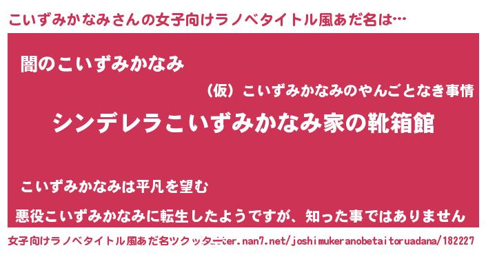 | 恥ずかしいあだ名 | 『コイズミカナミデラックス』『こいちん』 |