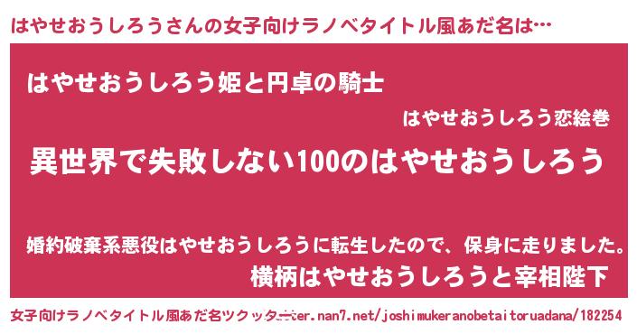| 男性向けラノベタイトル風あだ名 | 『はやせおうしろうという概念が存在しない退屈な世界 』 |