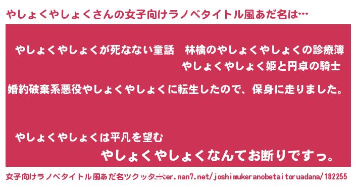 | 男性向けラノベタイトル風あだ名 | 『転生したらやしょくやしょくだった件』 |