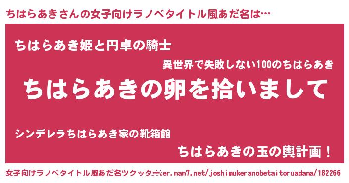 | 胡散臭い通販商品みたいなあだ名 | 『伝統あるサプリメント…その名も「ちはらあき」』 |