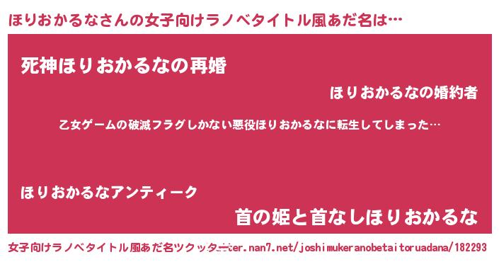 | 男性向けラノベタイトル風あだ名 | 『この素晴らしい世界にほりおかるなを!』 |