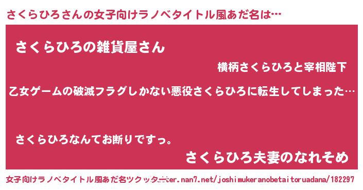 | 男性向けラノベタイトル風あだ名 | 『この素晴らしい世界にさくらひろを!』 |