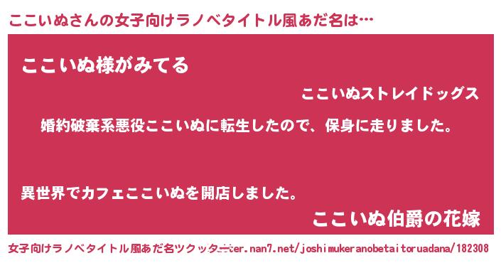 | 男性向けラノベタイトル風あだ名 | 『転生したらここいぬだった件』 |