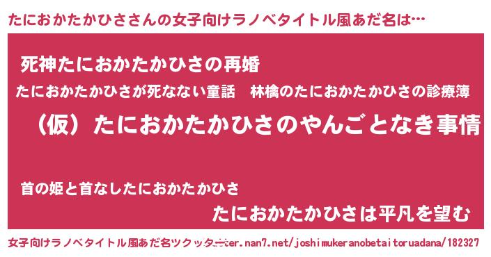 | 男性向けラノベタイトル風あだ名 | 『たにおかたかひさの憂鬱』 |