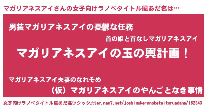 | 男性向けラノベタイトル風あだ名 | 『転生したらマガリアネスアイだった件』 |
