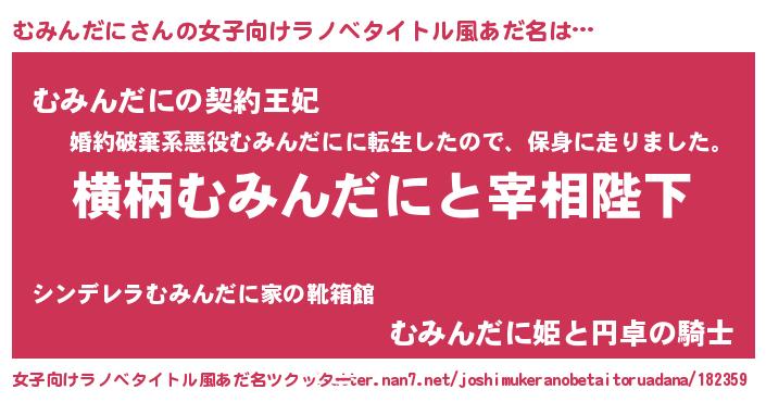 | 男性向けラノベタイトル風あだ名 | 『むみんだにに滅ぼされるだけの簡単なお仕事です』 |