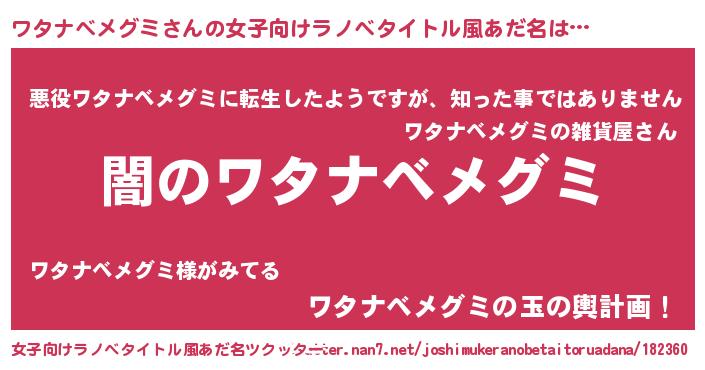 | 意味不明あだ名 | 『自称ワタナベメグミ』 |