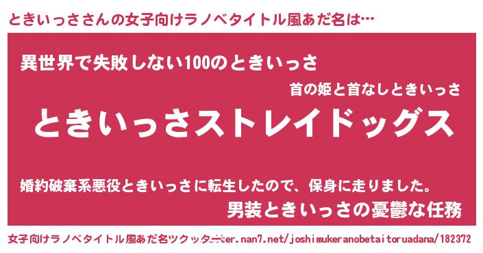 | ファンタジー風あだ名 | 『ゼトキトゥ』『トキディッシュ』 |
