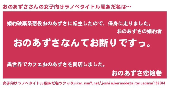 | 男性向けラノベタイトル風あだ名 | 『魔法科高校のおのあずさ』 |