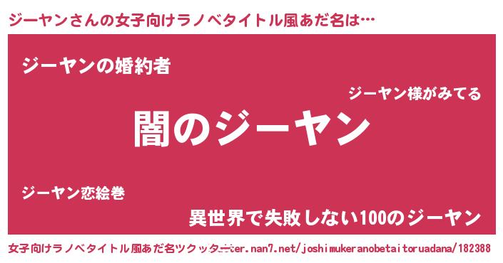 | 男性向けラノベタイトル風あだ名 | 『Re:ジーヤンから始める異世界生活』 |